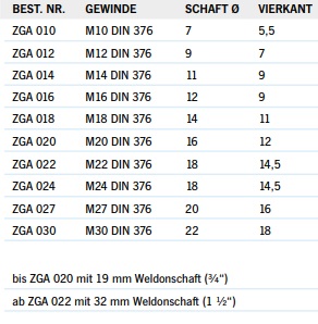 Die Gewindebohreraufnahme erfolgt mittels Adap- ter direkt in das 19 bzw. 32 mm Weldon-System. Nur für Durchgangsgewinde geeignet!