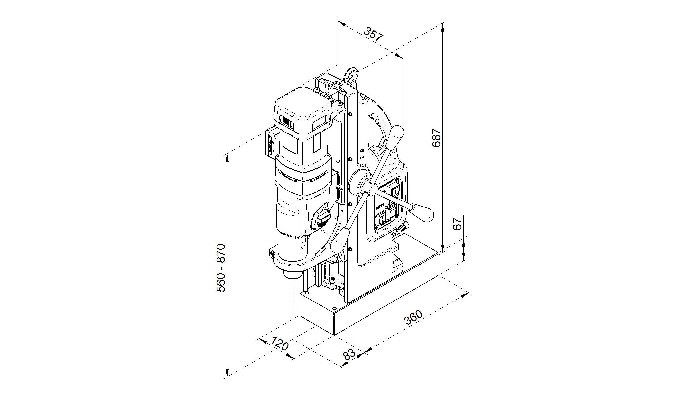Souveräne Leistung durch überlegene Kraftentfaltung. Die MAB 1300 V ist die zurzeit stärkste Magnet-Kernbohr- maschine mit regelbarem automatischem Vorschub.