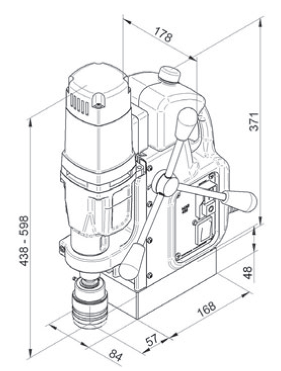 Robuste 2-Gang Bohreinheit mit MK 2 Arbeitsspindel. Optional mit Swivel-Base Einrichtung als MAB 455 SB lieferbar.