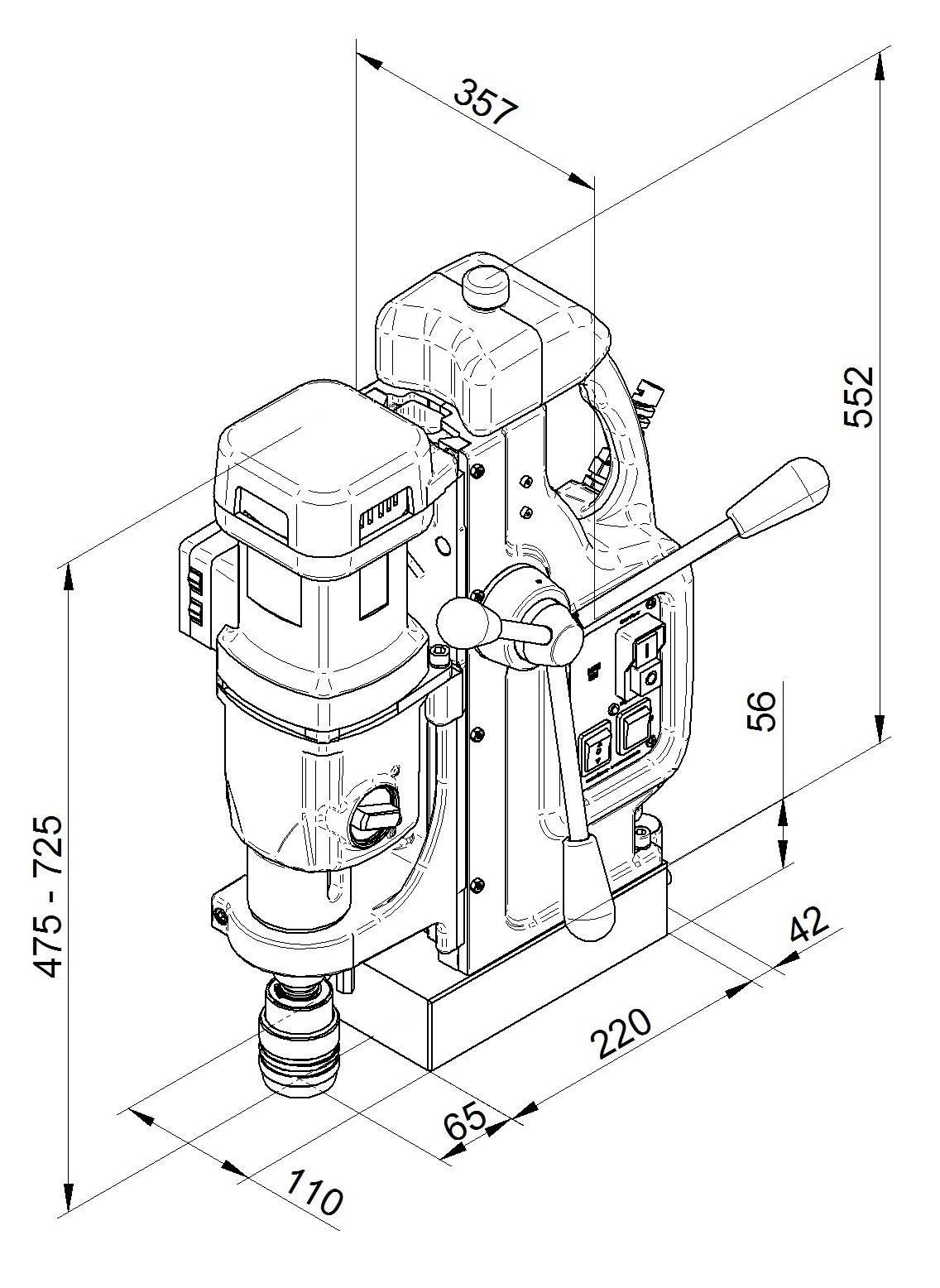 • ► Safety-Control-Abschaltung: Verliert der Magnet die Haftung, schalten Bohr-, und Vorschubmotor automatisch ab